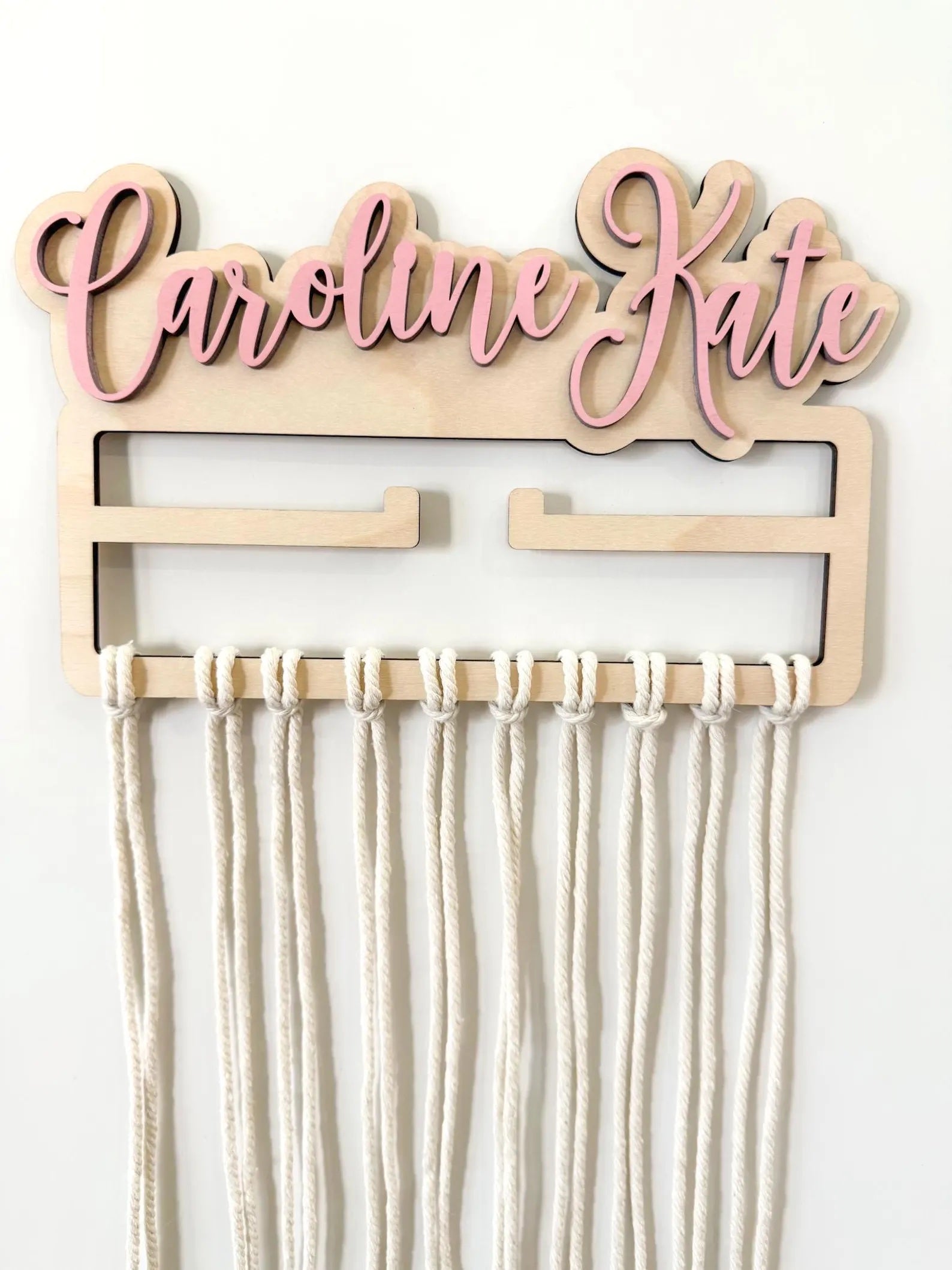 Personalized Hair Bow Holder Organizer – Wooden Nursery Wall Decor for Girls – Custom Name Bow Display by Beam & Cotton
