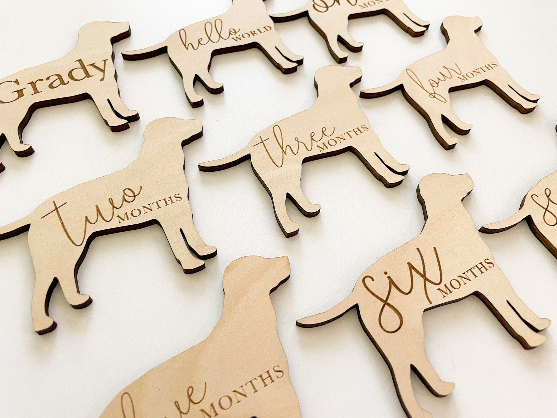 3. Month + Name: 13 standard milestones + one personalized with your customization. (hello world + 12 months + baby name). For this you can chose your favorite shape from the set or just a circle. Please indicate in the personalization box your choice.