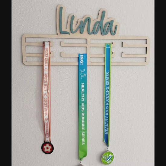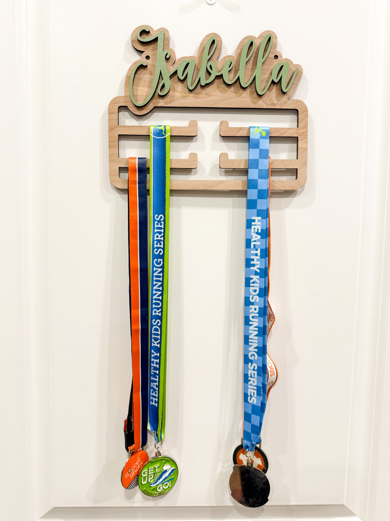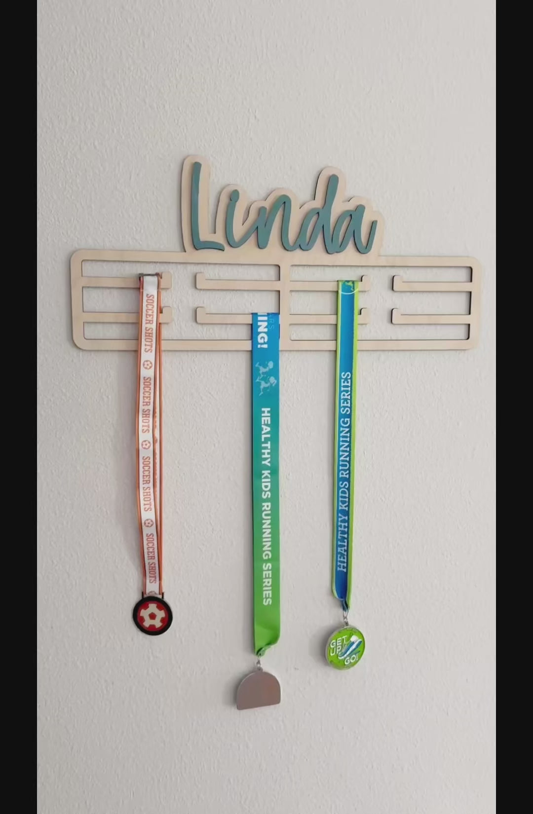 Need a personalized gift for your athlete? This is the perfect way to help organize the hanging medals and awards from their competitions.