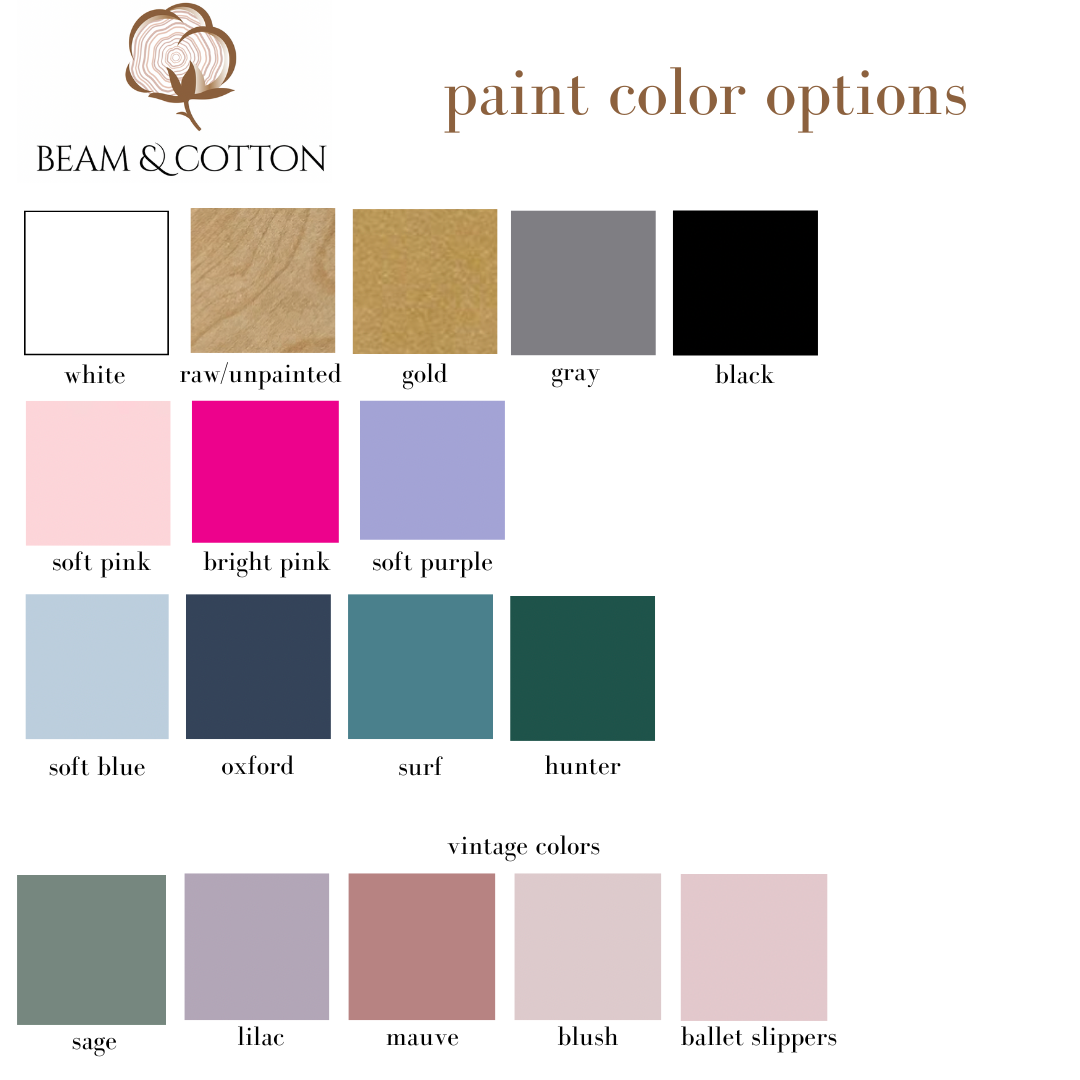 If there is something that you are looking for that and don't see please, reach out to us as we love creating custom products for our customers! In addition, if there is a specific color or a stain not listed, we would be happy to try to accommodate your request if possible. Small fees may be required for these upgrades to cover the extra material we will have to purchase.