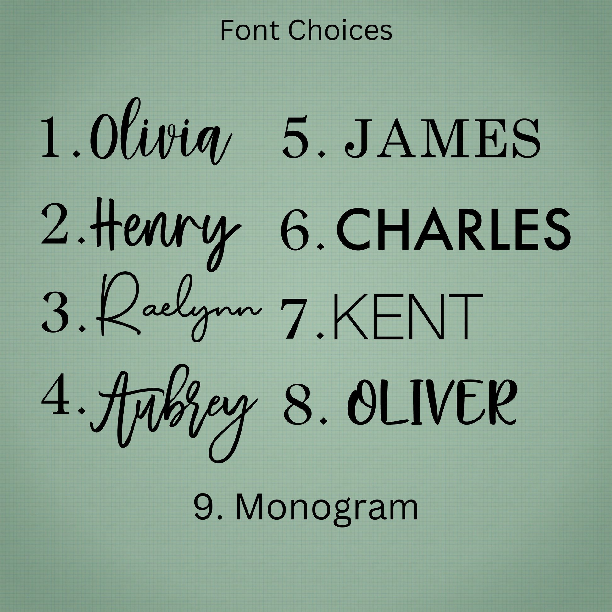 Custom upgrades available for this product are additional font choices, premium paint colors or choosing a different size for your product.
