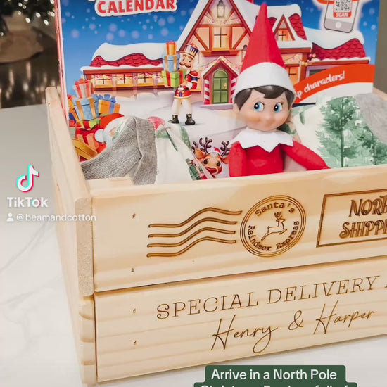Use it as a festive Christmas Eve box filled with holiday goodies or as a fun Elf arrival box to surprise your kids. Each sturdy wooden crate is laser-engraved and personalized with your childβs name(s) or family last name β creating a keepsake that can be reused year after year.